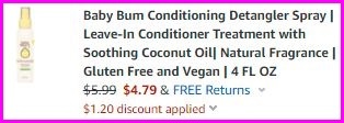 Visit Amazon and score a great deal on Baby Bum Conditioning Detangler Spray for only $5.99. To make the deal even better, clip the $1.20 off coupon right under the price and opt to Subscribe & Save for an extra 5% off to make your final price just $4.49. Grab yours now!