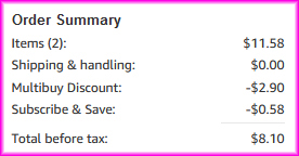 Note that by choosing the “Subscribe & Save” option, you are opting into a recurring subscription with free standard shipping on auto-deliveries. Non-Prime customers will pay shipping costs for the first delivery only, but any subsequent Subscribe & Save delivery will be free.