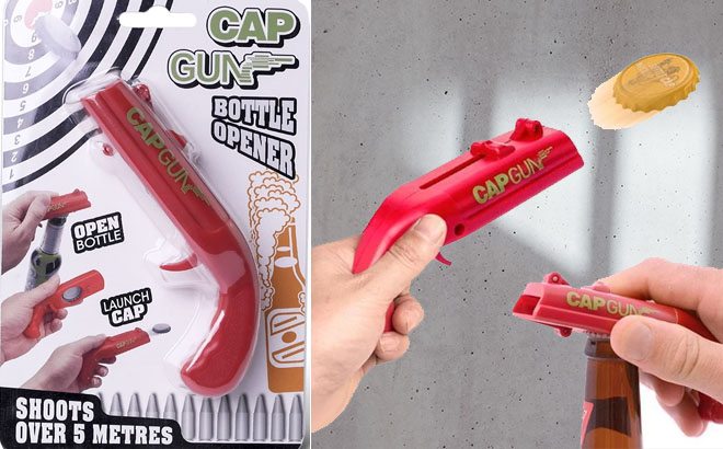 Snag this Cap Gun Bottle Opener 2-Pack for just $8.99 at Amazon! Regularly it is $10, and now it’s on sale. For price comparison, Walmart is selling this funny launcher for $11.99 now, which is usually $27. Shipping is free for Amazon Prime Members or on orders over $25. Four color combinations are available, choose yours here!