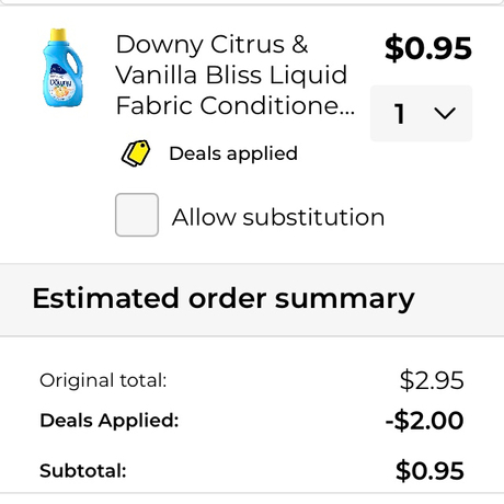 Clip the $2 off Downy coupon in the Dollar General App and find a location that has the product in stock. I found one store that had one left.