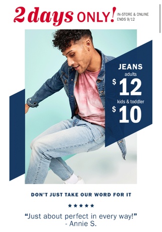 Women and Men jeans are $12
