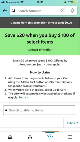 Select baby items $20 off $100 purchase amounting to $80 spent!