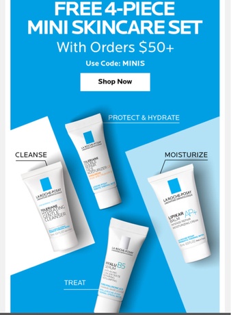 If you make a $50+ purchase from La Roche-Posay, use the code MINIS In order to receive 4 deluxe samples with your purchase.