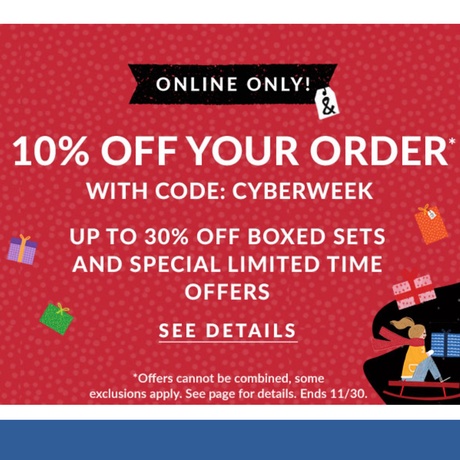 Use code CYBERWEEK. Other deals on Nook and Boxed sets also available. Free Shipping at $40