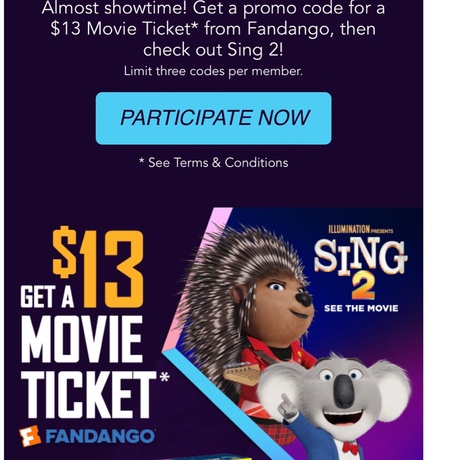 Buy any 5 participating Kelloggs products during 10/11/21 to 3/31/22. Take a picture of your receipts with qualifying items and upload your receipts. *One promo code for a $13 movie ticket from Fandango.