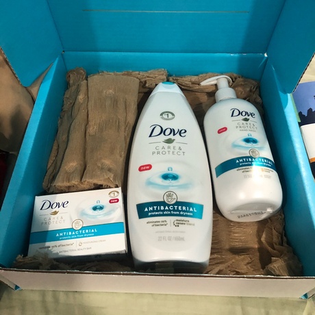 Am late but this is my free dove box with full size items and I love it .My go to products for bath is dove always.