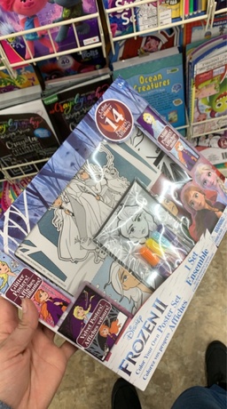 Found this at Dollar Tree in the regular kids school section. Super awesome find. It has 14 pieces of art fun and it’s perfect for all your frozen lovers out there.