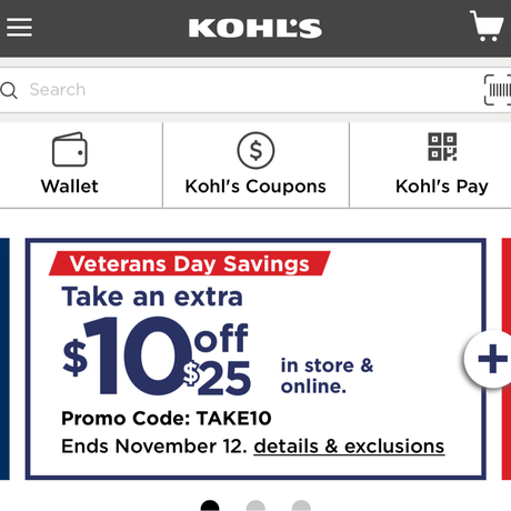Use code TAKE10 to receive $10 off $25 at Kohl’s!