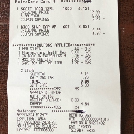 I think we did pretty good at CVS. I had a 40% off, a 30% off, a $.50 coupon, extra bucks reward, and a five dollar gift card from Fetch!!!