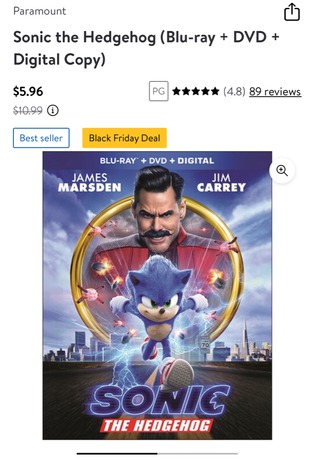 For those Sonic the Hedgehog fans, Walmart has the movie nearly 1/2 price as a Black Friday Deal!