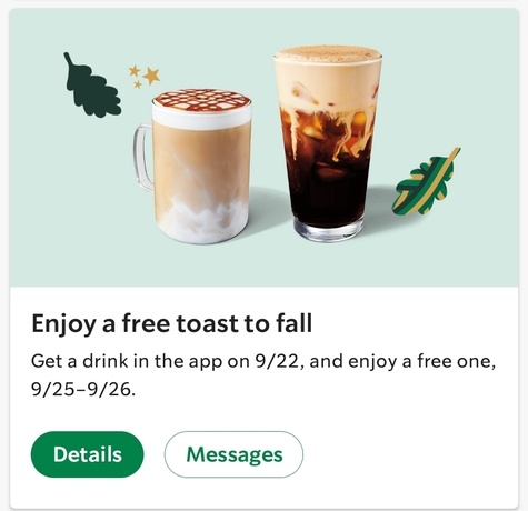 Get a grande drink on your app and they will give u a coupon for a free drink, for 9/25-9/26.