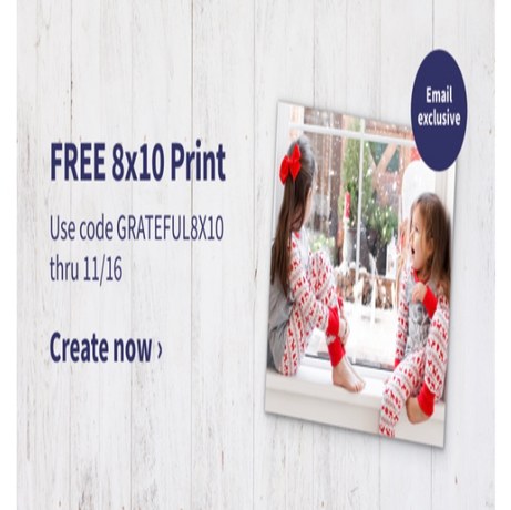 Use code GRATEFUL8x10 to snag a free 8×10 print at Walgreens.