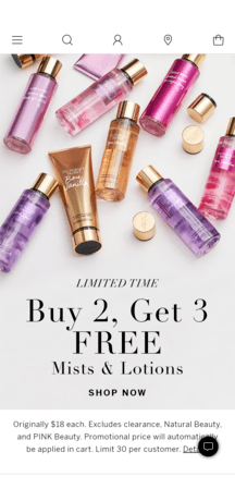 Buy 2/Get 3 FREE mist and lotions at Victoria’s Secret
