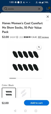 The Walmart app has women’s Hanes 10 pack no-show socks for $2.00 for pick up only! If you switch to shipping the price goes up.