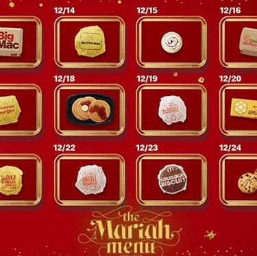Starting December 13th through the 24th, McDonaldâs patrons can get a FREE item with any $1 purchase through the McDonaldâs app. Each day from Dec.13 through Dec.24, U.S. customers can get a different menu item for free from the Mariah Menu on the McDonaldâs app with a $1 minimum purchase