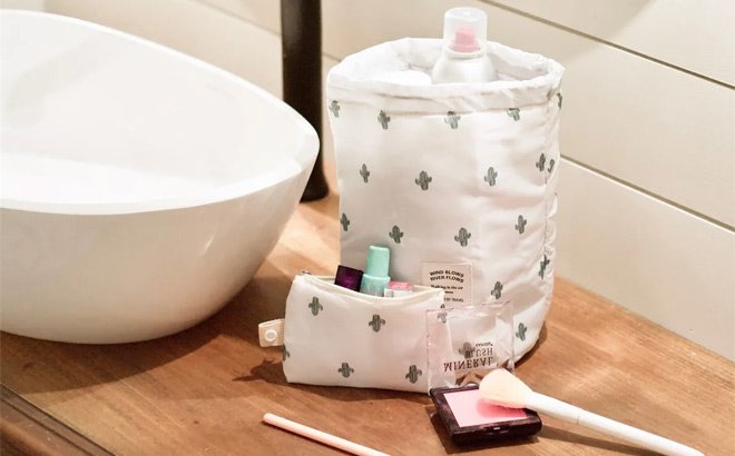 You’re getting three cosmetic bags in this set – a hanging bag, a portable makeup bag, and a cinch cosmetic bag. Also, you can choose from a lot of different color options.