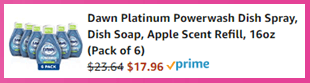 Don’t miss this great deal for Dawn Dish Spray Refills 6-Pack on Amazon. Get them at $23.64 and opt to Subscribe and Save for an extra 5% off. There is also a $4.50 off coupon under the price that will lower it down to only $17.96 – that’s just $2.99 each! Snag yours!