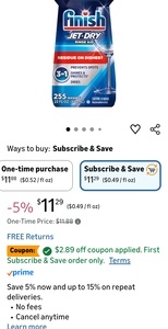 Finish Dual Action Dishwasher Cleaner (8.45 oz) $4.88