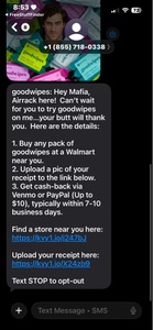 but I just got a text saying I could send any pic of my receipt and venmo or PayPal and 7-10 days will have $.