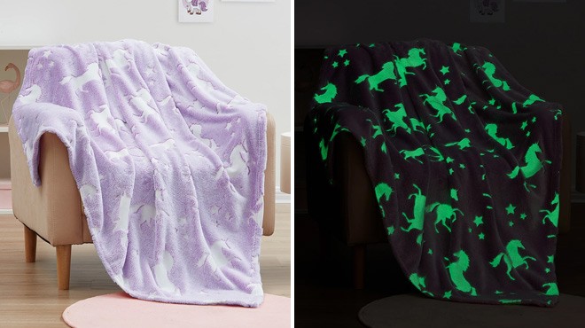 Through December 8th, score a nice deal on this Glow in the Dark Throw at Macy’s. It normally costs $30, but now you can get one on sale for only $9.99! There are two styles available at this price – Space & Unicorn. Check it out here!