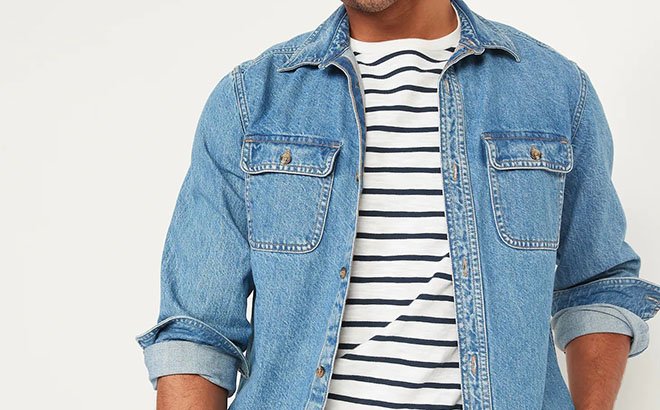 Old Navy Fit Long Sleeve Jean Workwear Shirt for Men