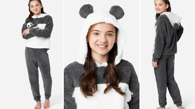 Plush Patterned Hooded Pajama Set