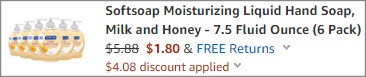 But check this out! You can score Milk & Honey 6-Pack for JUST $1.80 right now, that’s 30¢ per hand soap!