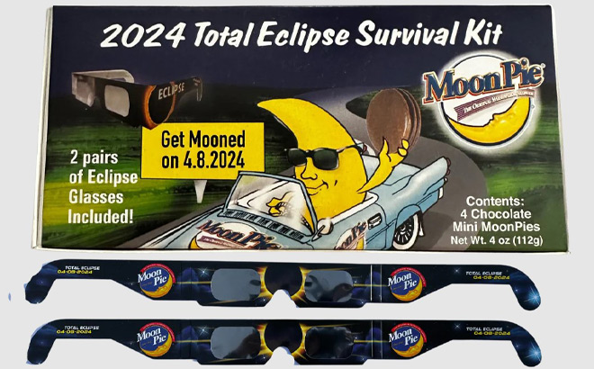 MoonPie is offering a limited edition MoonPie Solar Eclipse Survival Kit for $9.99! You’ll receive four mini MoonPies and two pairs of solar eclipse glasses. Customers can also find this survival kit at Dollar Tree, participating Walmart stores and select grocery stores (while supplies last). If you purchase in-store, note that the glasses are sold separately for an additional $1.99 each.