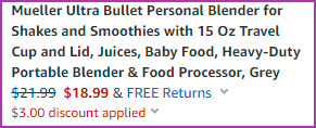 Through June 2nd, go to Amazon and get this Ultra Bullet Portable Blender for a nice price. It’s priced at $21.99, but when you clip the $3 coupon, you can get it for just $18.99. It comes with travel cup and lid. It’s available in three colors. Shipping is free for Amazon Prime Members or on orders over $25. Get it here!
